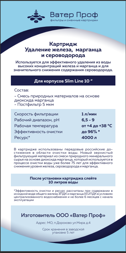 Картридж для удаления сероводорода, железа и марганца для системы обратного осмоса информация: