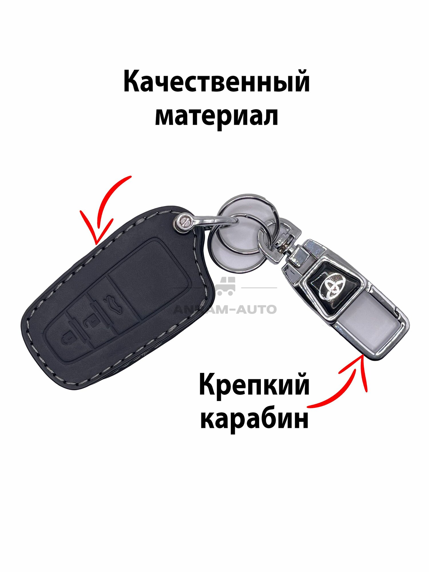 Отзывы на Кожаный чехол для ключа с логотипом Toyota Тойота Corolla Camry 70 RAV 4 Land Cruiser 200 Land Cruiser Prado Highlander брелок с карабином (черный)