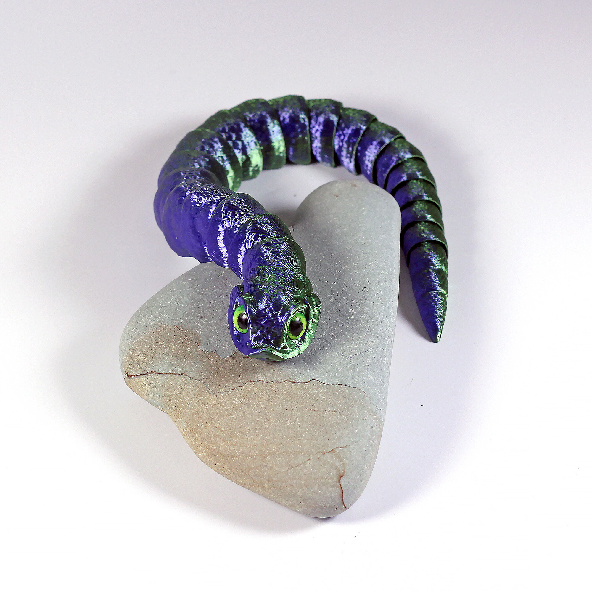 Гибкая игрушка-антистресс, змея с глазами, 27 см, зеленая с синим информация: