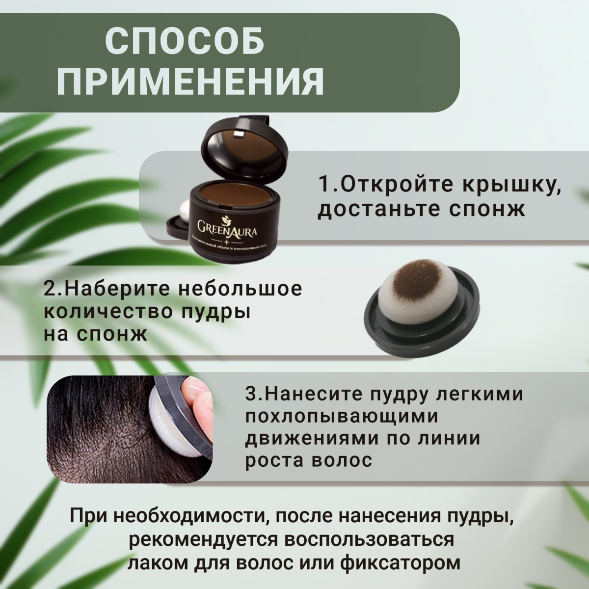 Пудра для волос от седины GreenAura, черная, с двумя спонжами 510 ₽