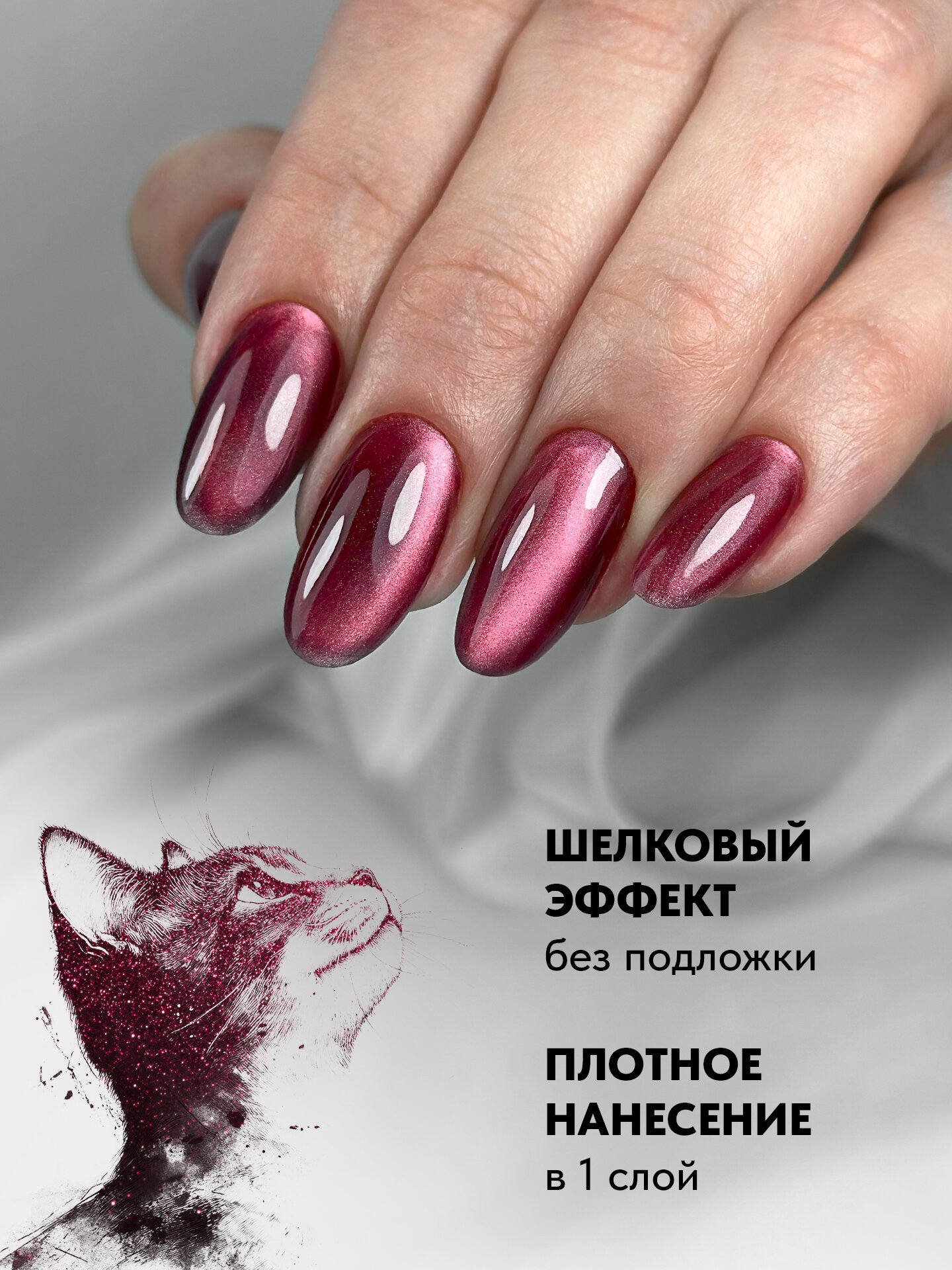 Отзывы на Гель лак Кошачий глаз корейский от Patrisa Nail Magic Cat Burgundy, вишнево-пепельный, 8 мл