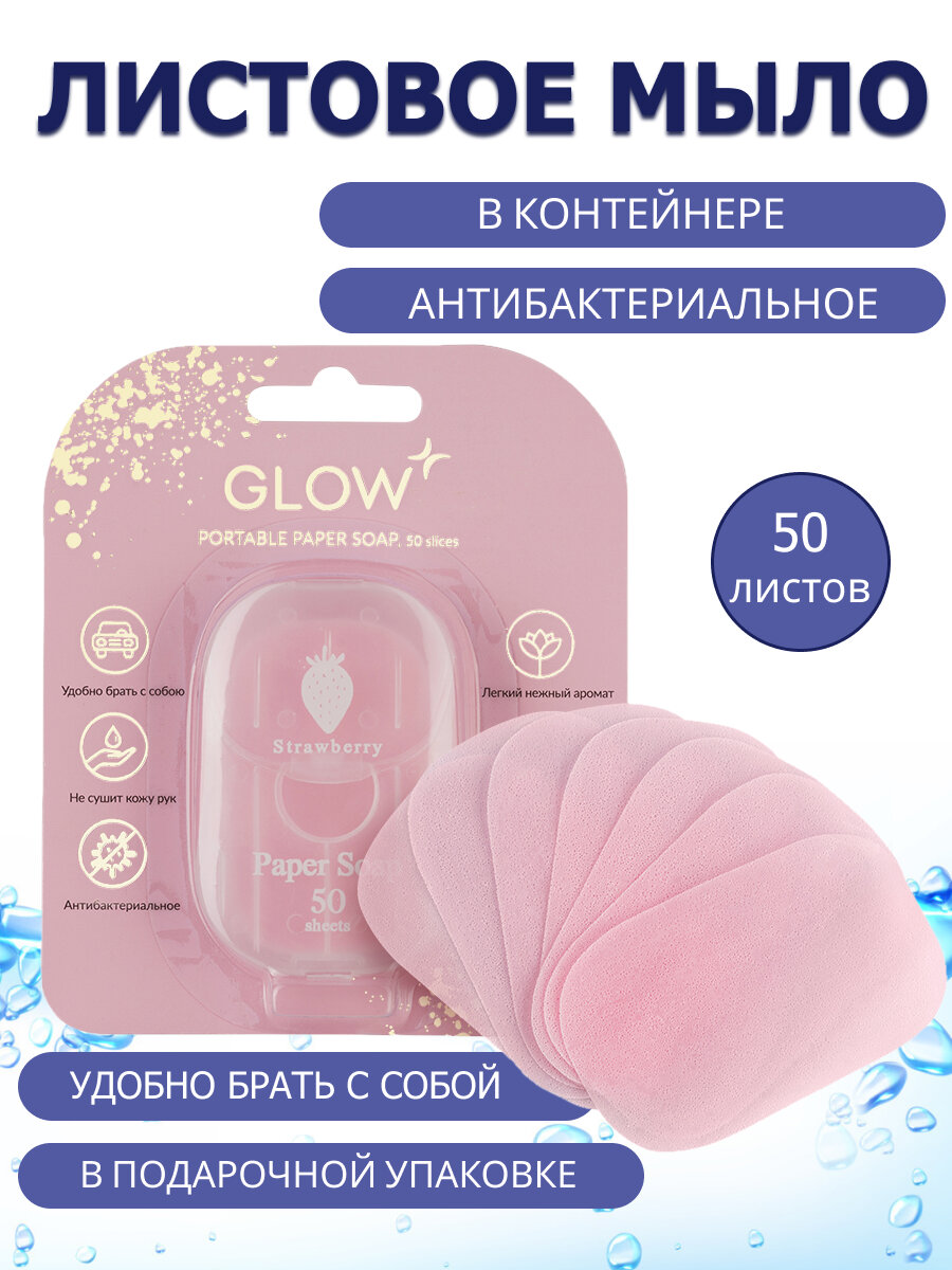 10 цен на Мыло листовое GLOW CARE дорожное в футляре, с легким ароматом клубники