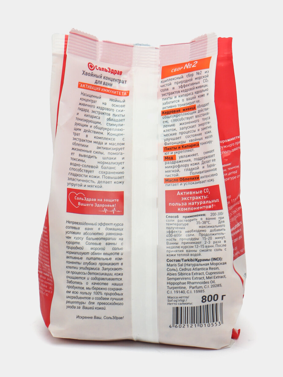 Хвойный концентрат-соль для ванны Сольздрав Активация иммунитета, 800г информация: