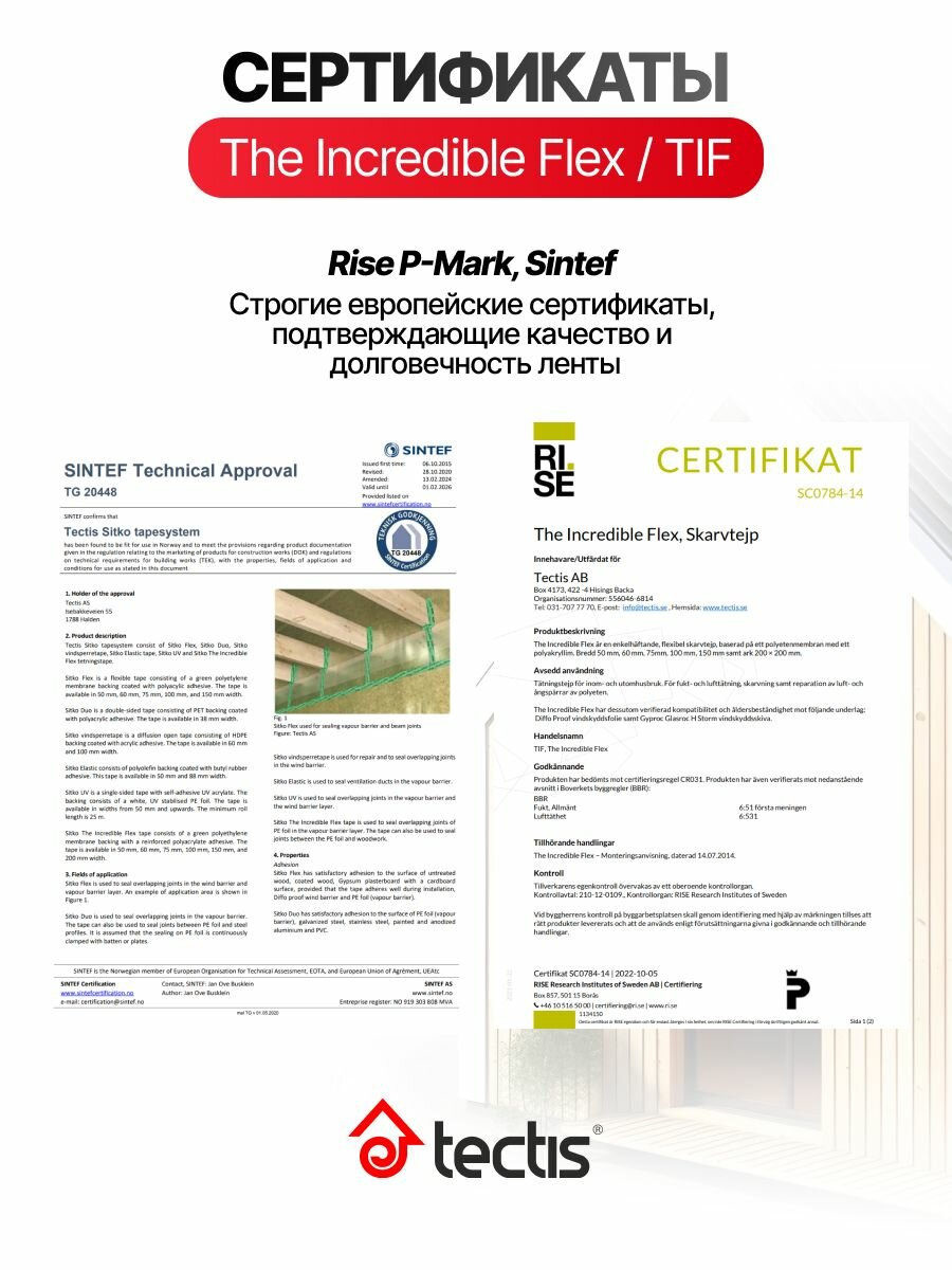Отзывы на Клейкая лента Tectis The Incredible Flex, Sitko TIF, 50mm*25m для проклейки пароизоляции и мембраны, армированный монтажный скотч для пароизоляции