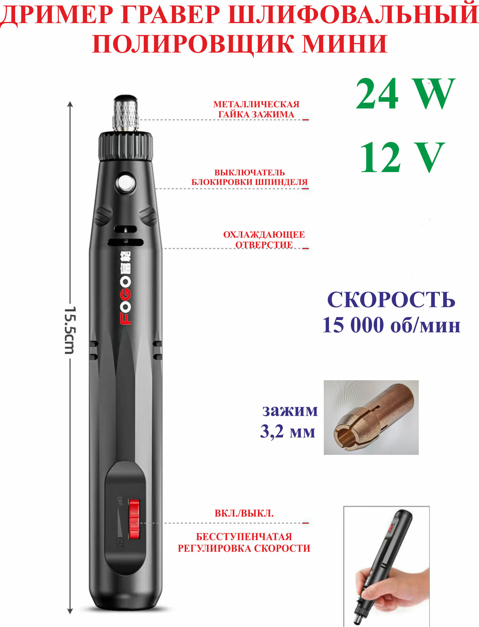 Мини гравер дример шлифовщик , 12 V, зажим 3,2 мм, 15000 об./мин. информация: