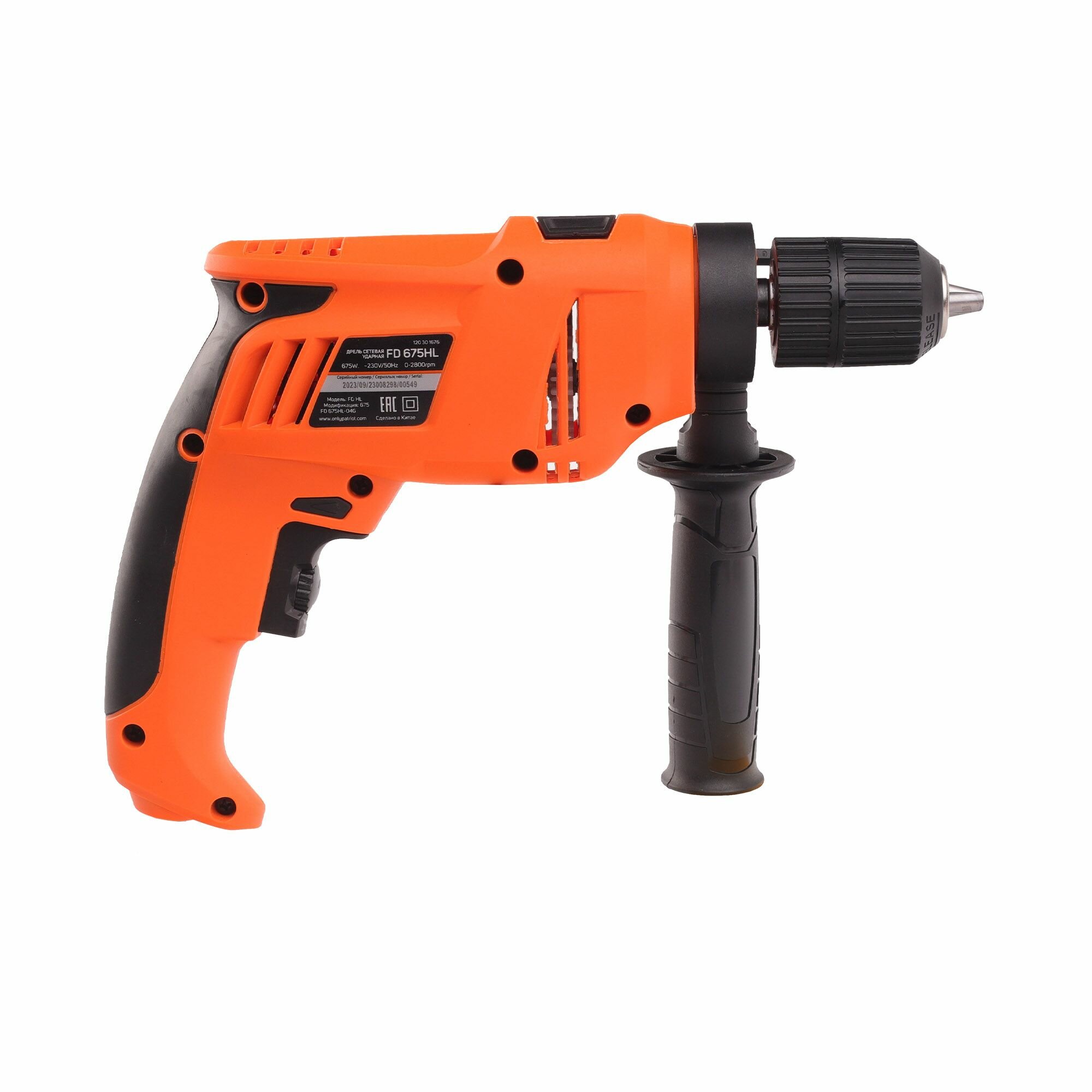 Дрель электр. ударн. PATRIOT FD 675HL (675Вт, 2800об/мин, 44800уд/мин, макс. диам. сверл. 13мм, БЗП)