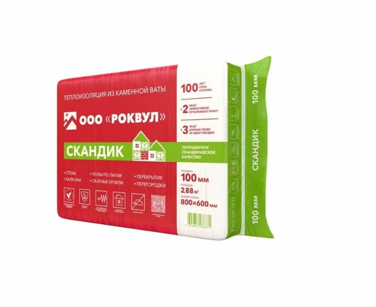 Утеплитель Роквул Лайт Баттс Скандик 100х600х800 мм 2,88 кв. м информация: