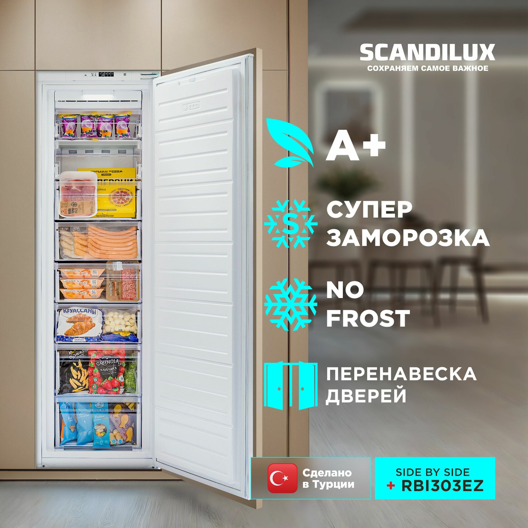 10 цен на Встраиваемая морозильная камера SCANDILUX FNBI303E NO FROST супер охлаждение высота 177 см, перенавешиваемые двери, скользящее крепление фасада, Энергопотребление А+, производство Турция