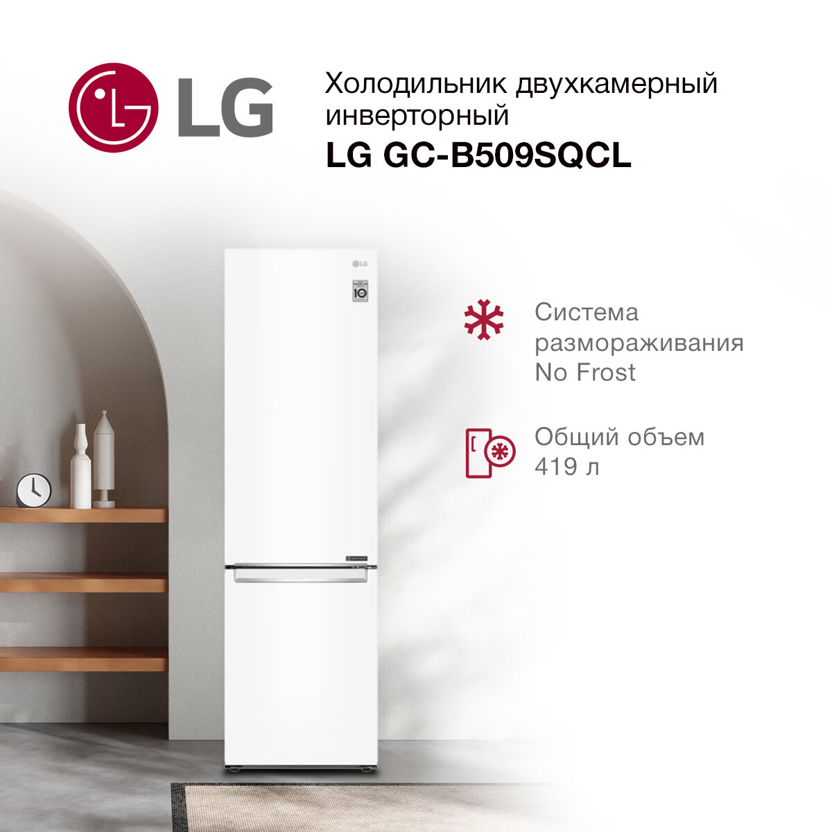 10 цен на Холодильник LG GC-B509SQCL, двухкамерный, No Frost, инверторный, A+, белый