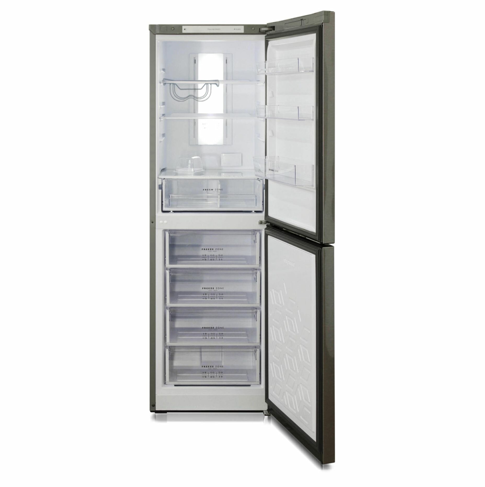 Двухкамерный холодильник с нижней морозильной камерой с системой Full No Frost с дисплеем на двери Бирюса M980NF