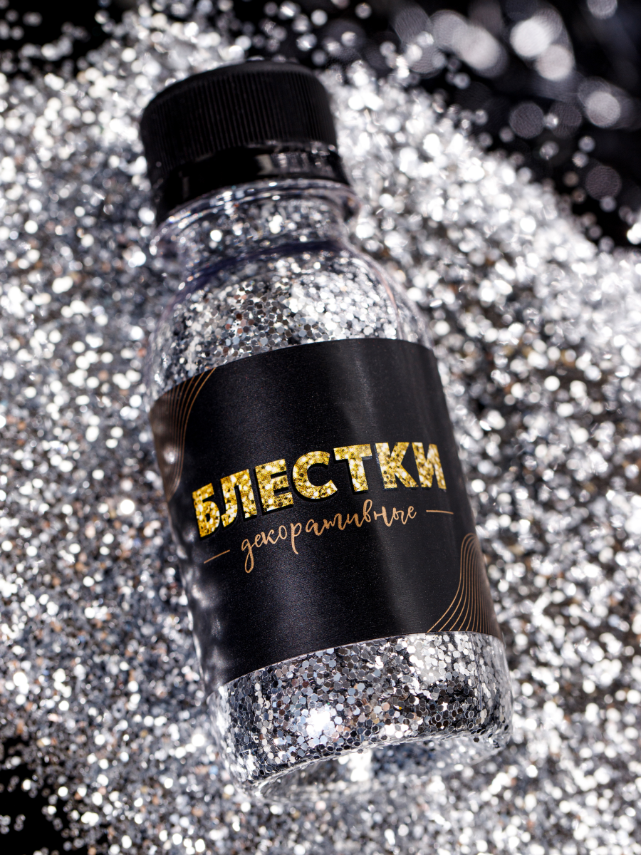 10 цен на Глиттер блестки для декора и творчества 100 мл серебряные крупные 1 мм глиттерика 70 гр.
