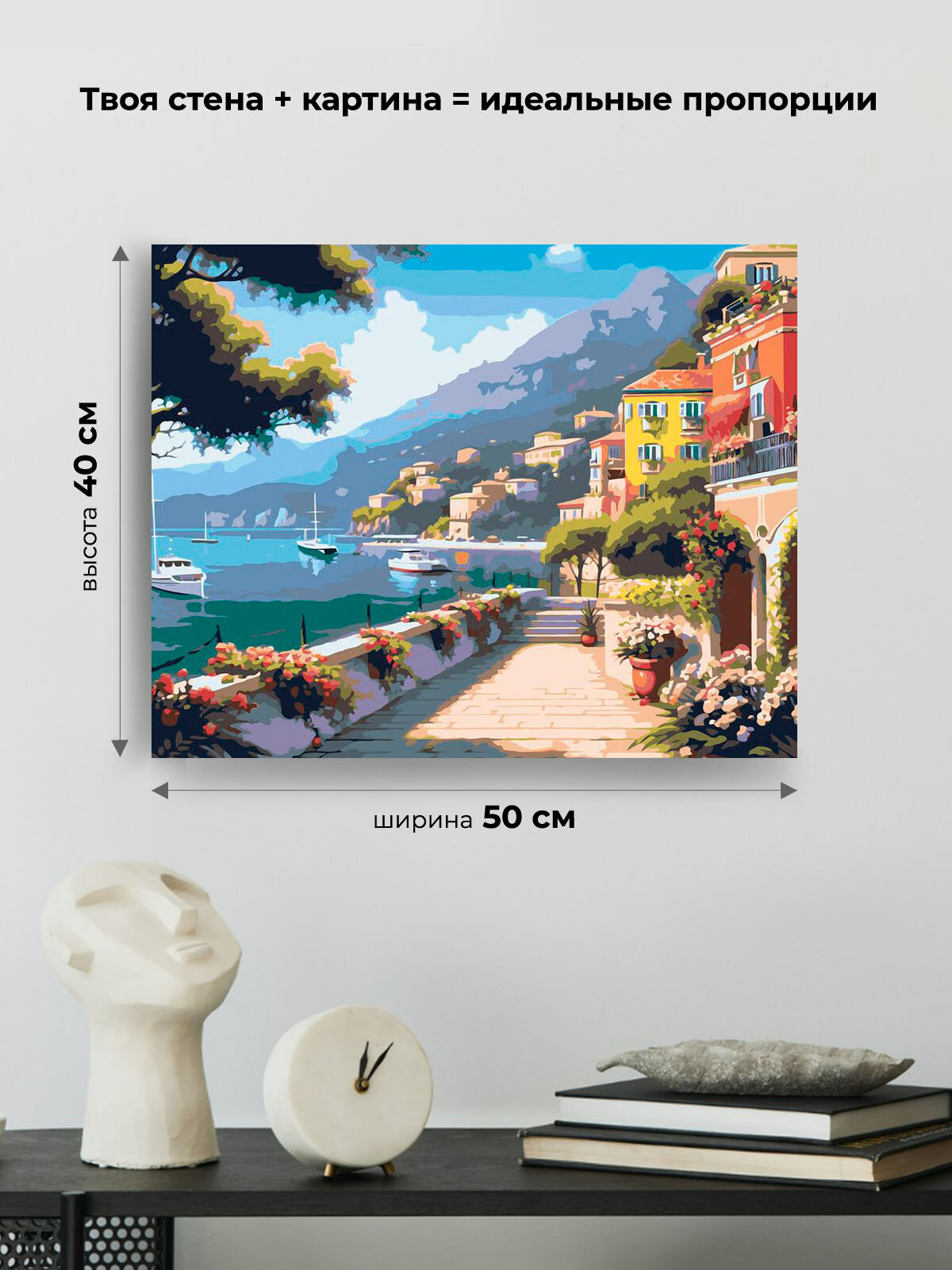 Картина по номерам на холсте с подрамником "Природа: Вид из кафе на море в сказочном городе", Раскраска 40х50 см, Заливы 1 297 ₽