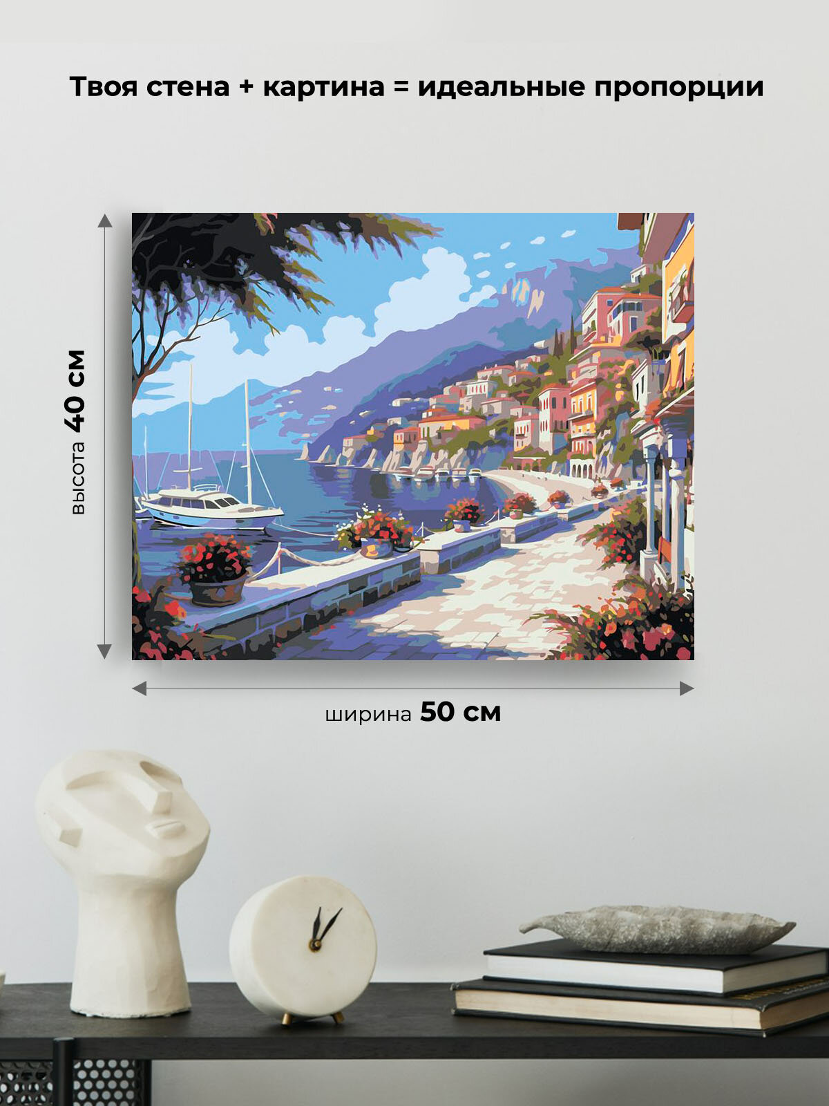 Картина по номерам на холсте с подрамником "Природа: Вид из кафе на море в сказочном городе", Раскраска 40х50 см, Заливы 1 297 ₽