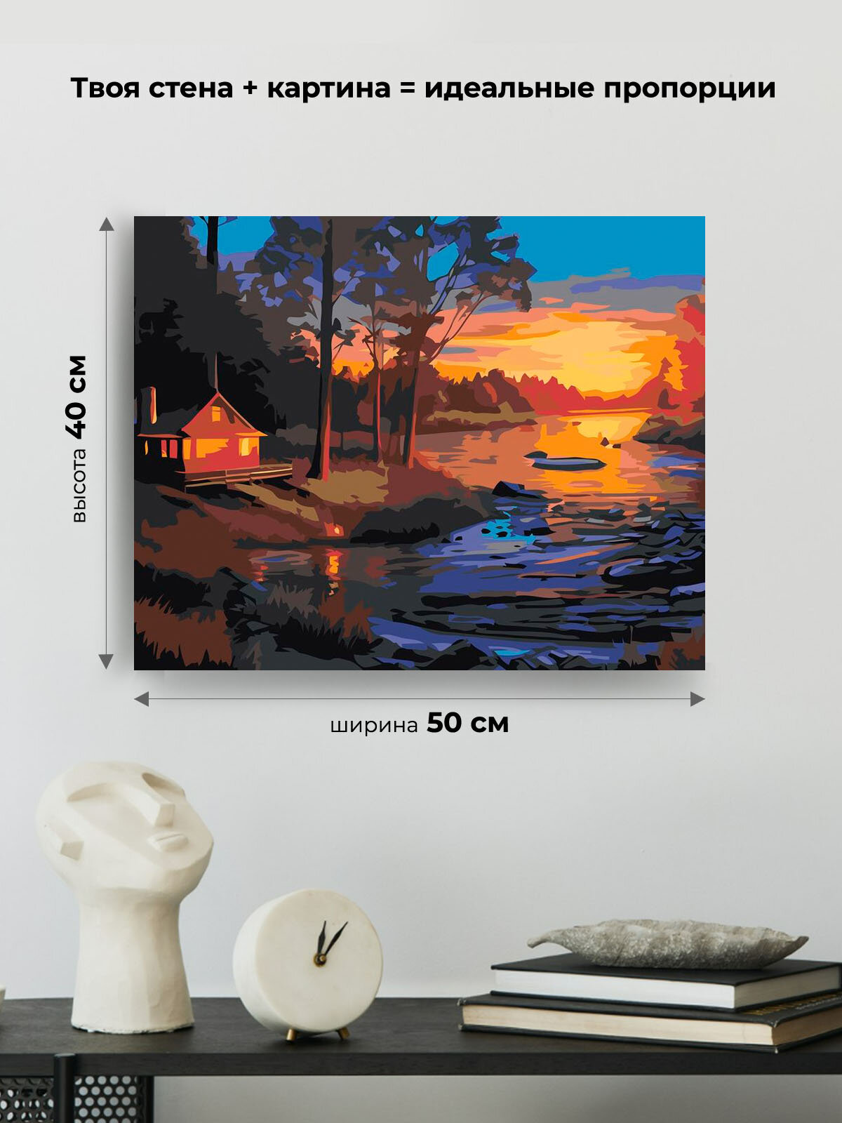 Картина по номерам на холсте с подрамником "Природа: Пейзаж с домиком и причалом на берегу озера", Раскраска 40х50 см 1 300 ₽
