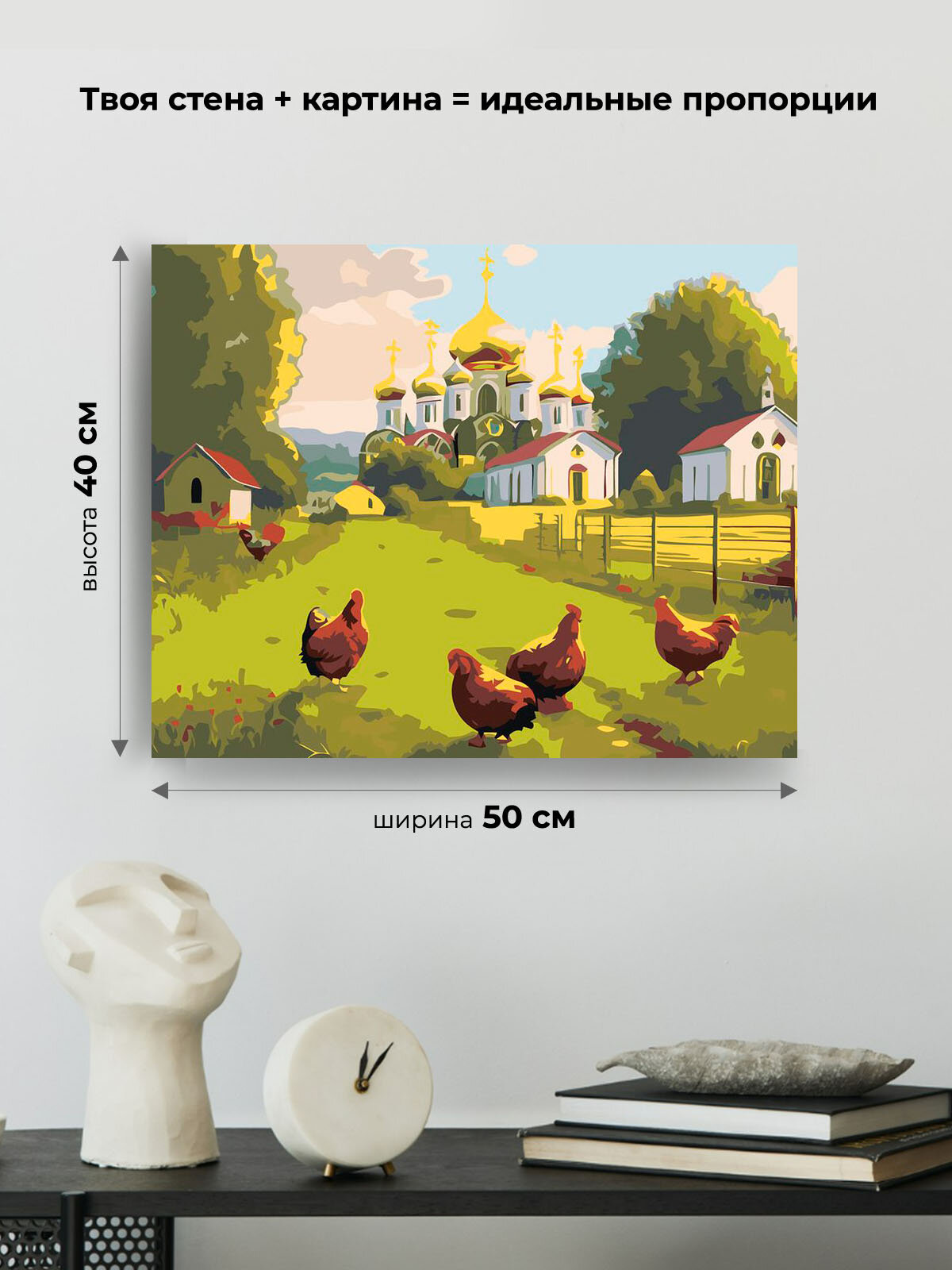 10 цен на Картина по номерам на холсте с подрамником "Природа: Деревенский пейзаж с церковью", Раскраска 40х50 см, Лето День
