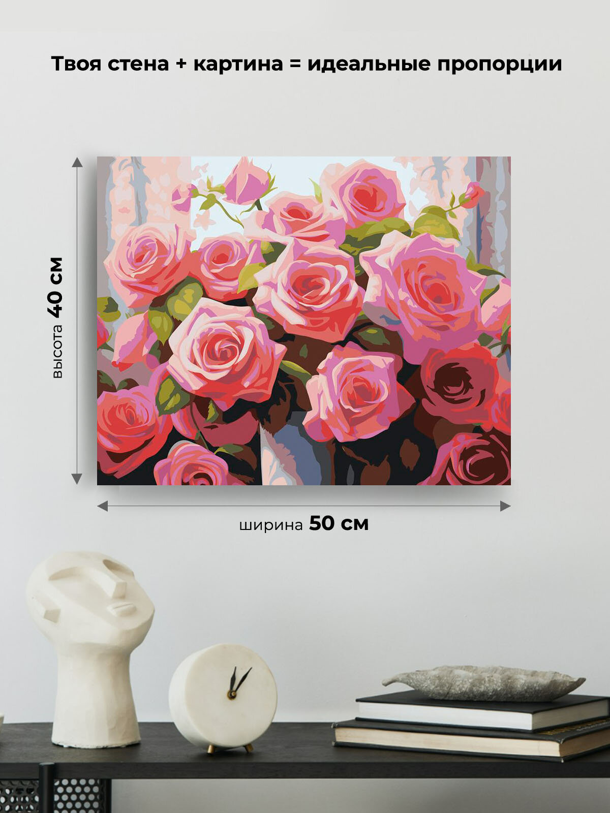 10 цен на Картина по номерам на холсте с подрамником "Цветы: Розовые розы в вазе" Раскраска 40x50 см, Растения