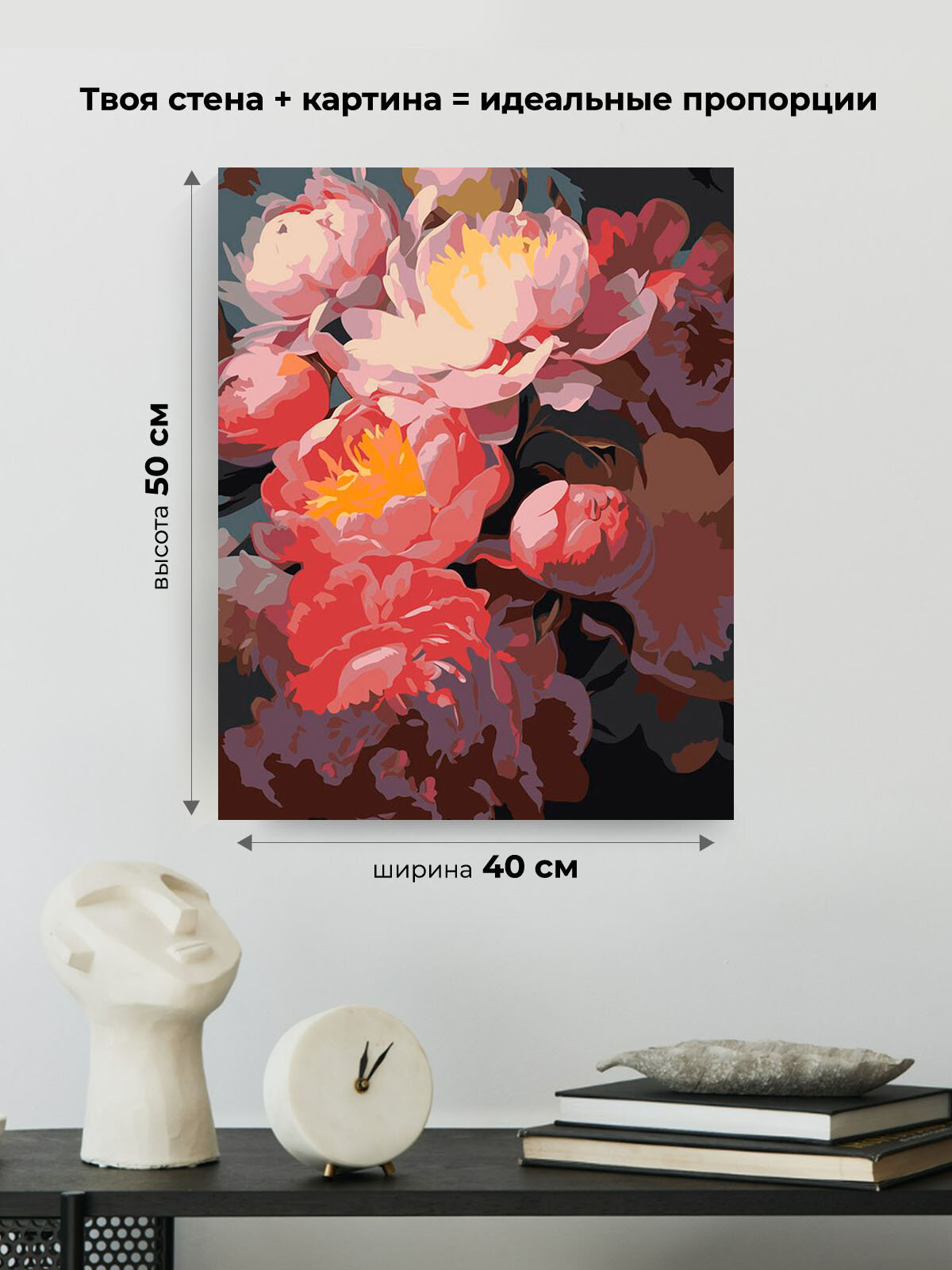 Картина по номерам на холсте с подрамником "Цветы: Композиция из пионов в темных тонах" Раскраска 40x50 см, Растения информация: