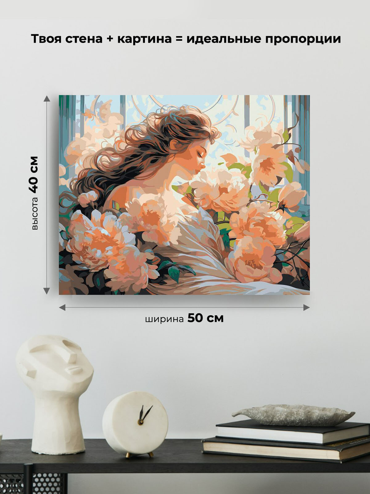 Картина по номерам на холсте с подрамником "Цветы: Девушка и пионы в пастельных тонах" Раскраска 40x50 см, Растения 1 300 ₽