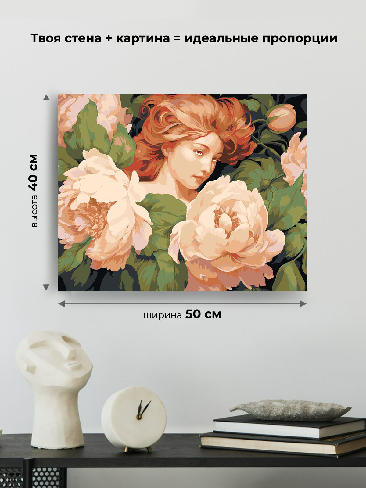 10 цен на Картина по номерам на холсте с подрамником "Цветы: Девушка и пионы в пастельных тонах" Раскраска 40x50 см, Растения