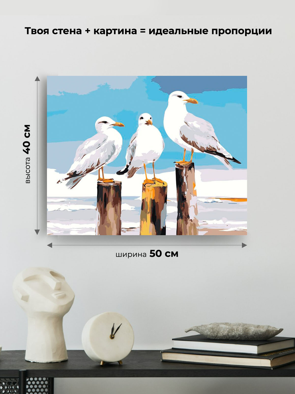 10 цен на Картина по номерам на холсте с подрамником "Море: Чайки на пляже" Раскраска 40x50 см, Птицы Пляжи Природа