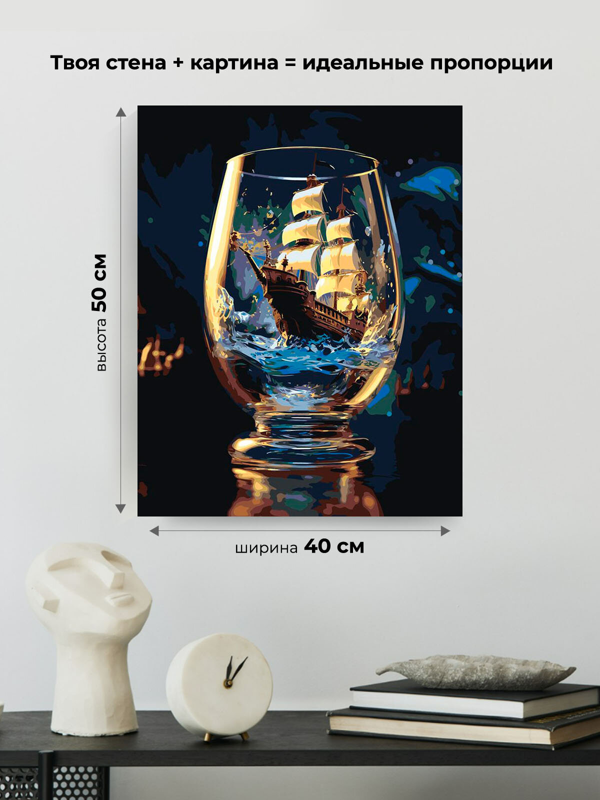 Картина по номерам на холсте с подрамником "Море: Корабль-парусник в бокале 2" Раскраска 40x50 см, Техника информация: