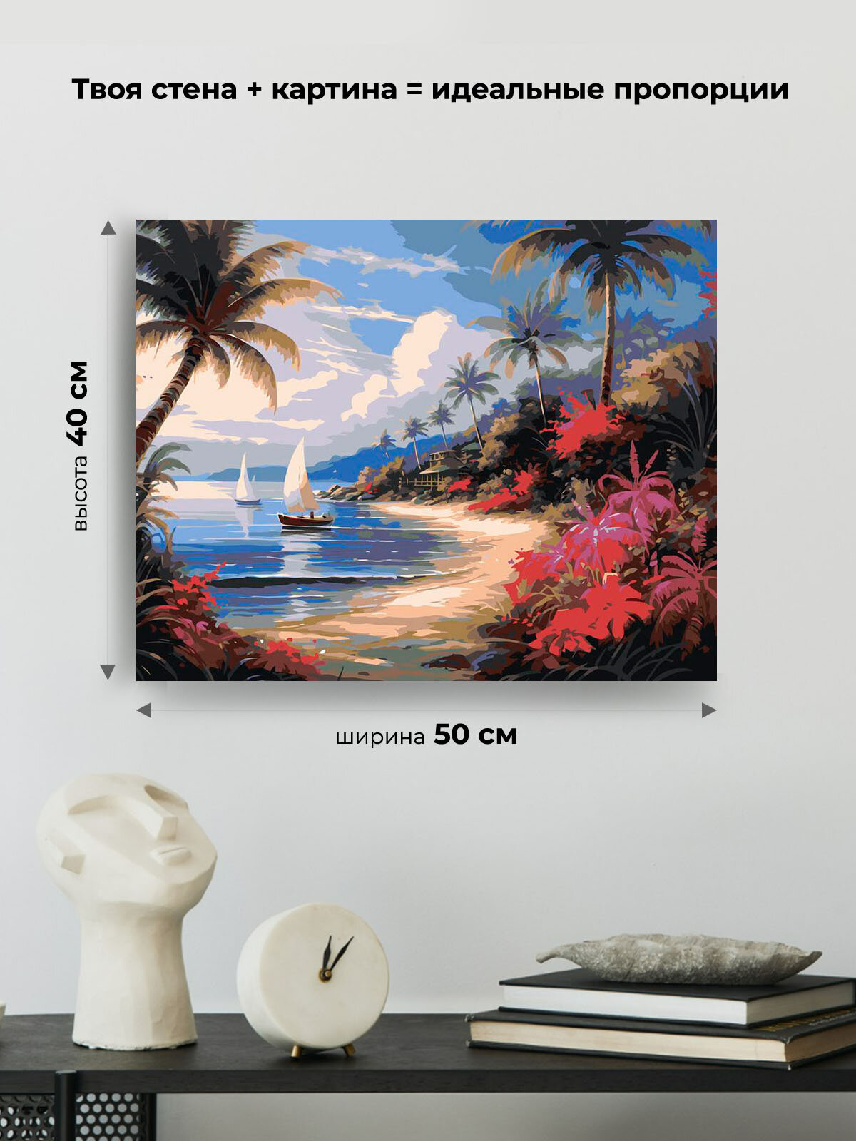 10 цен на Картина по номерам на холсте с подрамником "Море: Лодки в тропической бухте" Раскраска 40x50 см, Заливы Пляжи Корабли