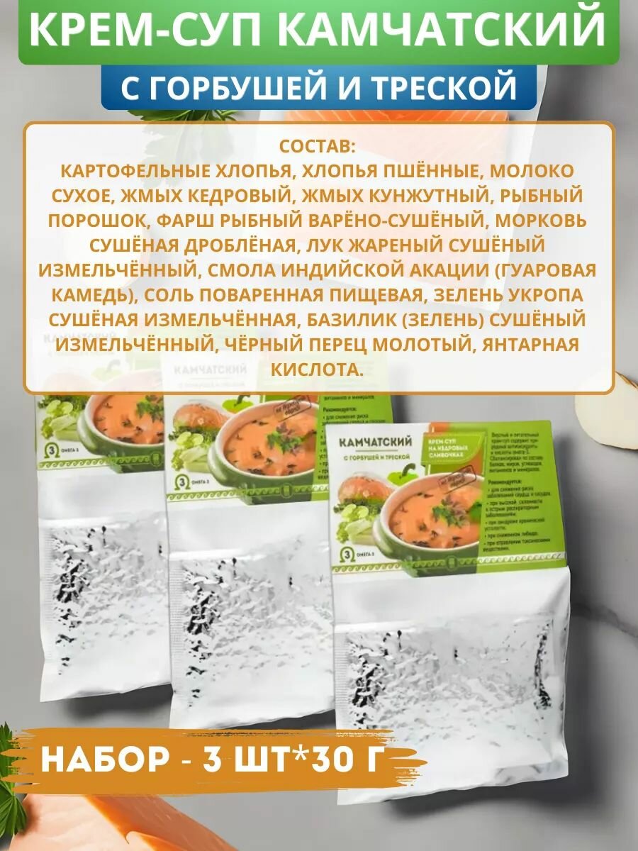 10 цен на Крем-суп Камчатский с горбушей и треской для сердца и сосудов, 30 г - 3 штуки
