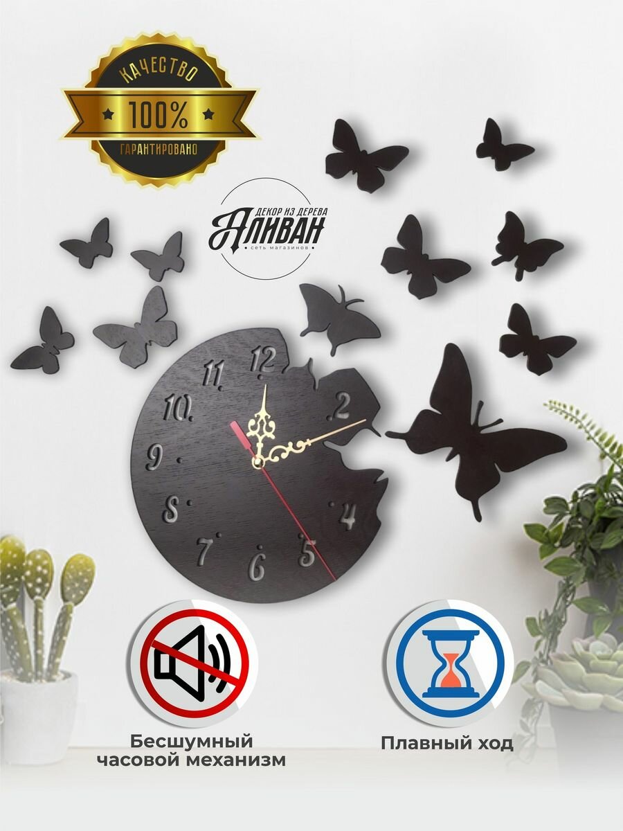 10 цен на Часы настенные интерьерные с бабочками, деревянные, цвет темный шоколад