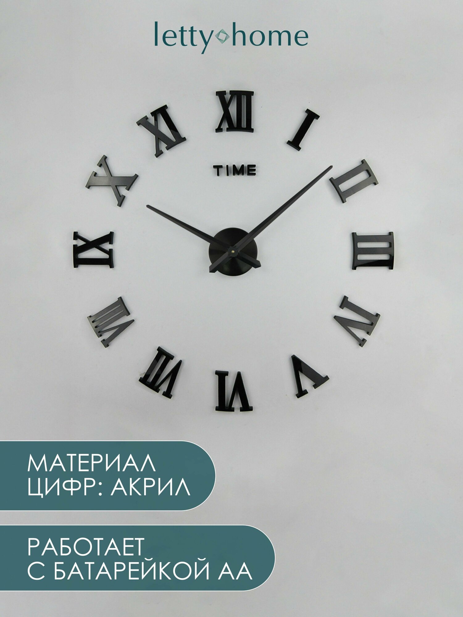 Самоклеющиеся Настенные Часы J. Tree, Бесшумные на стену в гостинную, спальню, кухню. Черные. Размер 50-70см. информация: