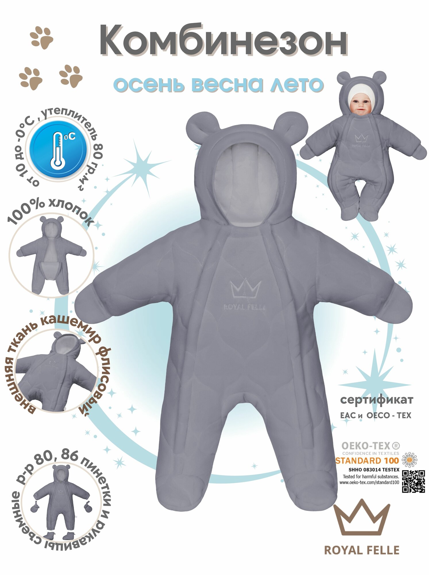Комбинезон ROYAL FELLE Easy Grey 80, размер 80, , серый 2 500 ₽