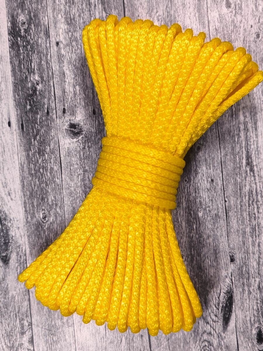Веревка бельевая 6 мм 20 м желтая. Шнур бельевой вязаный полипропиленовый с сердечником информация: