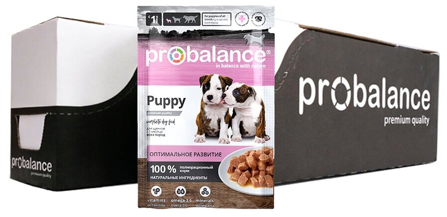 Корм для собак влажный ProBalance Puppy Immuno для щенков, пауч, 85гр х 28шт информация: