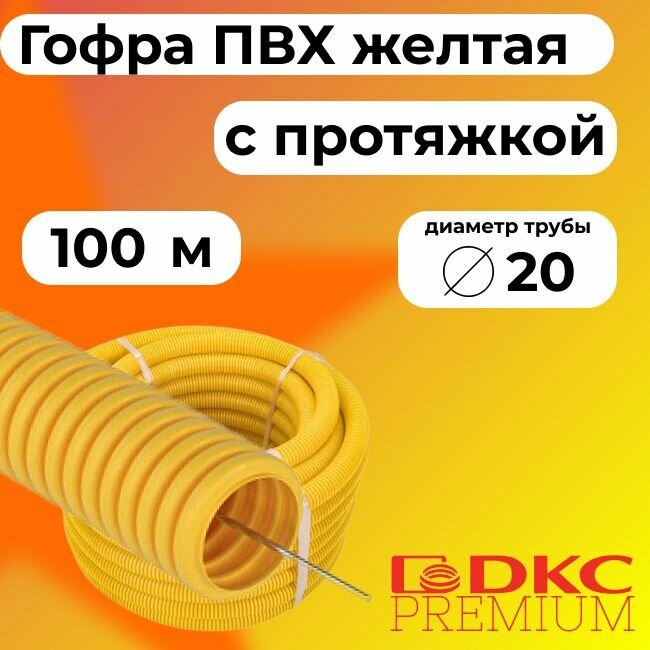 Гофра для кабеля ПВХ D 20 мм с протяжкой желтая 100 м. DKC Premium. информация: