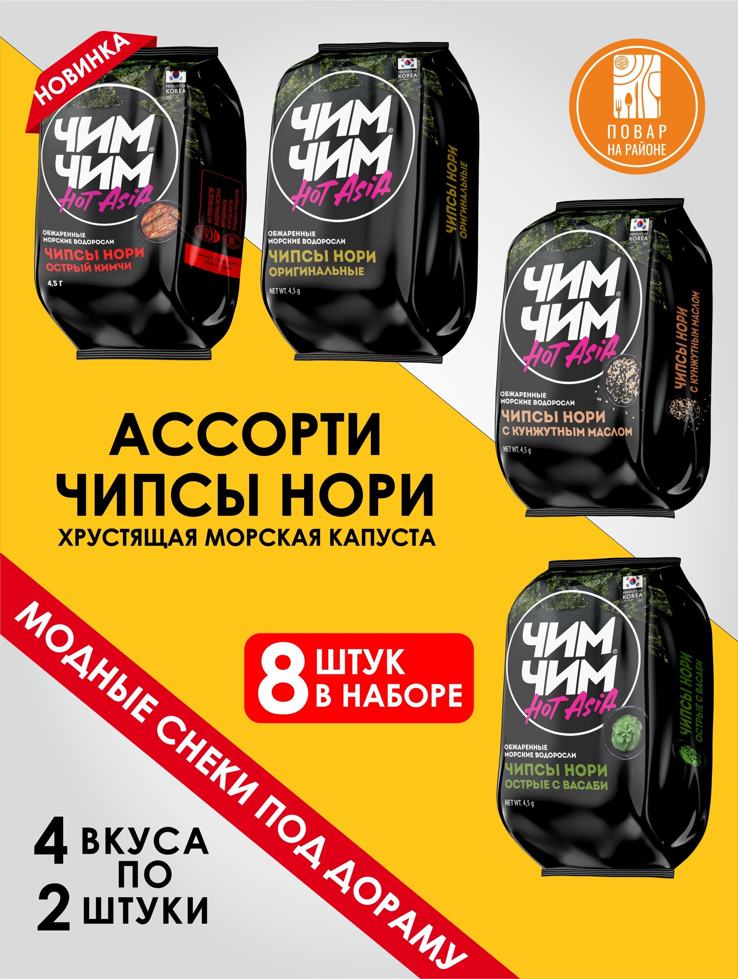 Чипсы нори ЧИМ ЧИМ набор ассорти 4 вида, из морских водорослей, 8 шт информация: