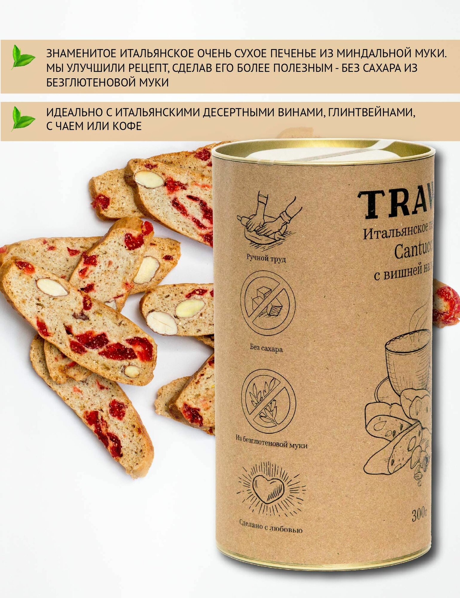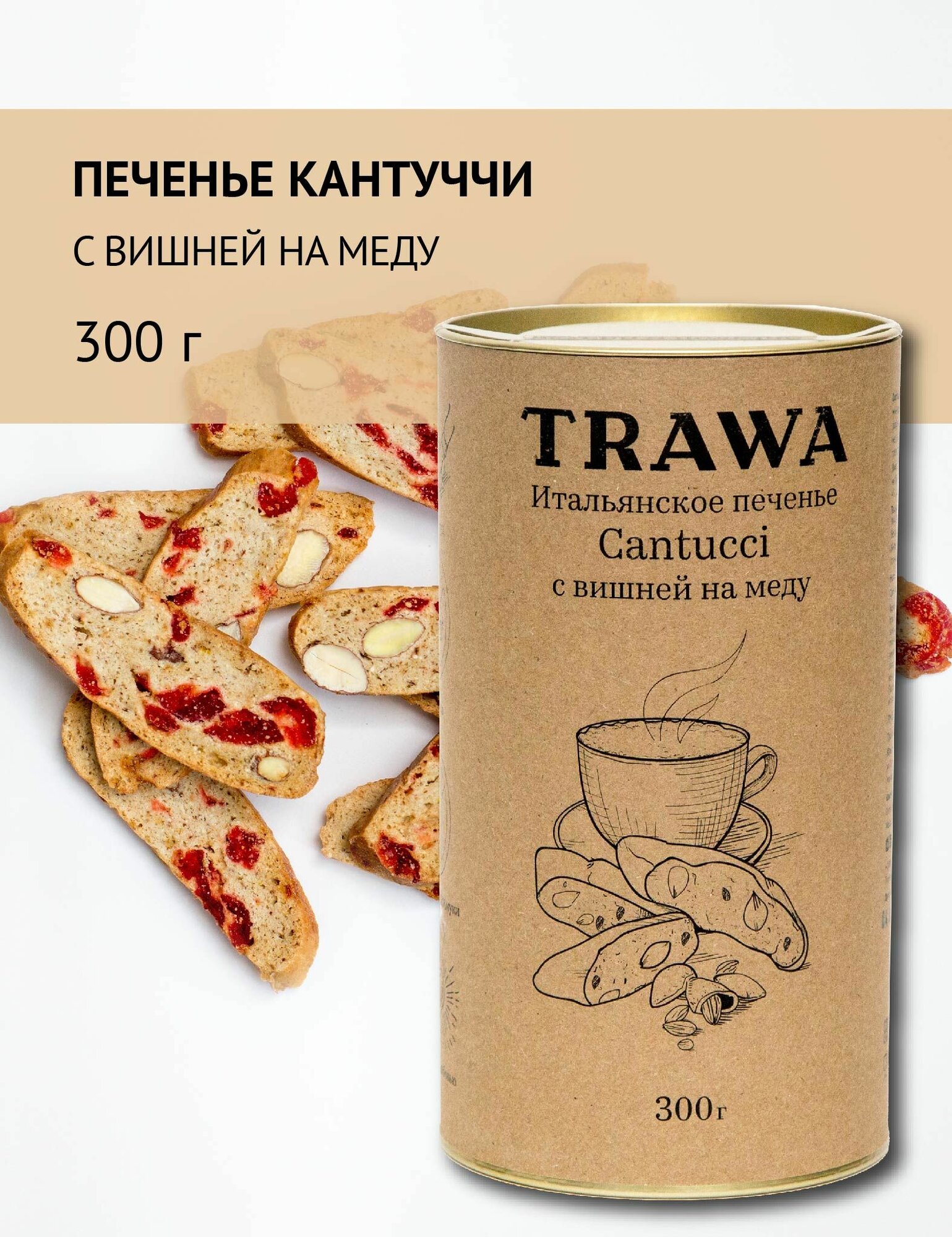 10 цен на TRAWA Печенье Кантуччи с вишней на меду 300 гр / Полезный перекус / Без сахара и глютена