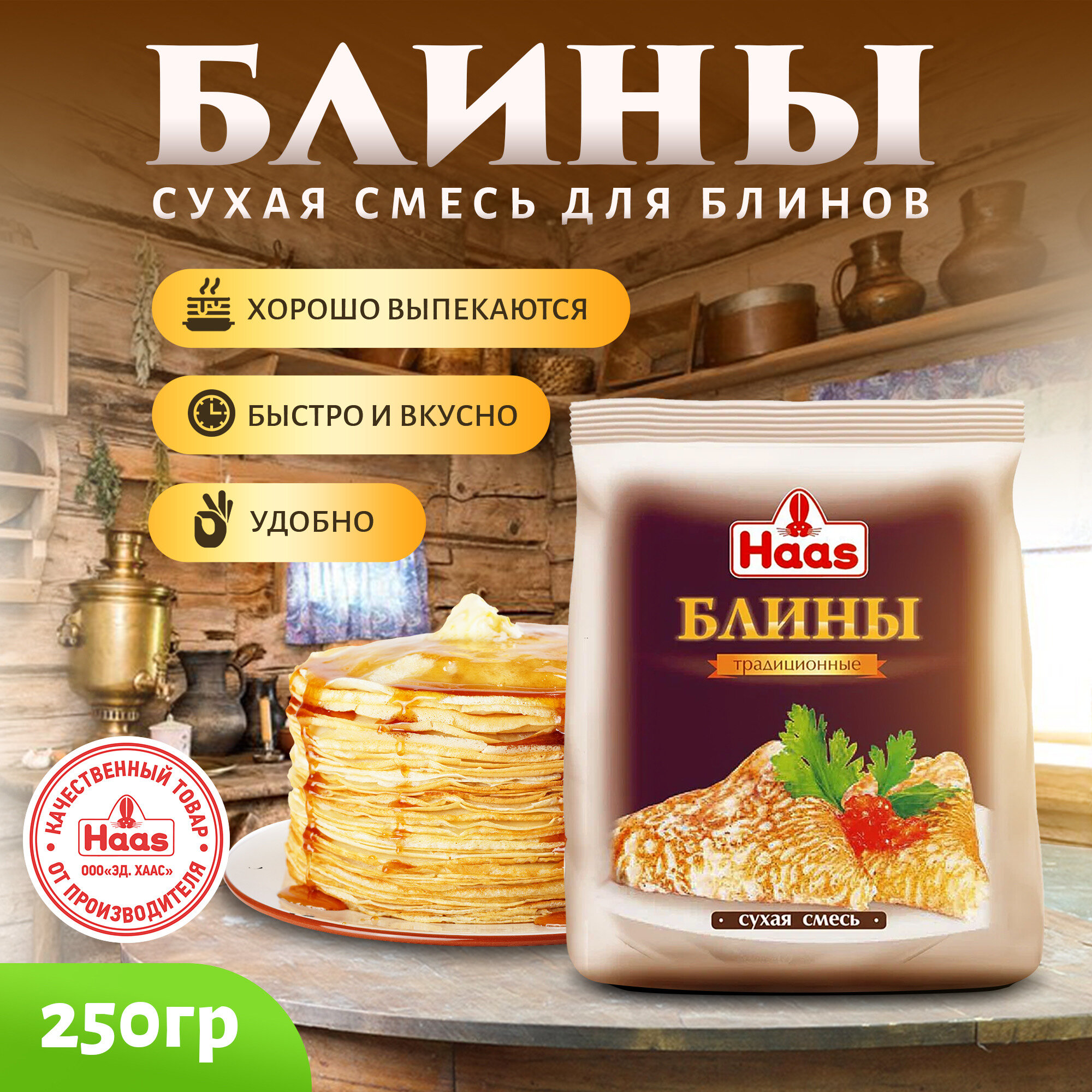 Сухая смесь HAAS "Блины", для блинов, пшеничная мука, без ГМО, 250 г информация: