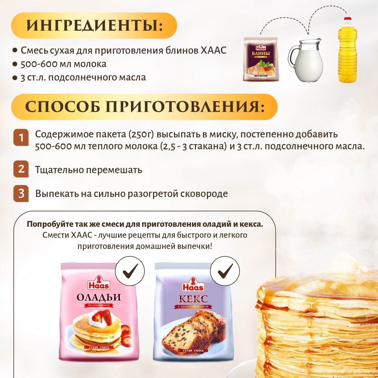 Отзывы на Сухая смесь HAAS "Блины", для блинов, пшеничная мука, без ГМО, 250 г