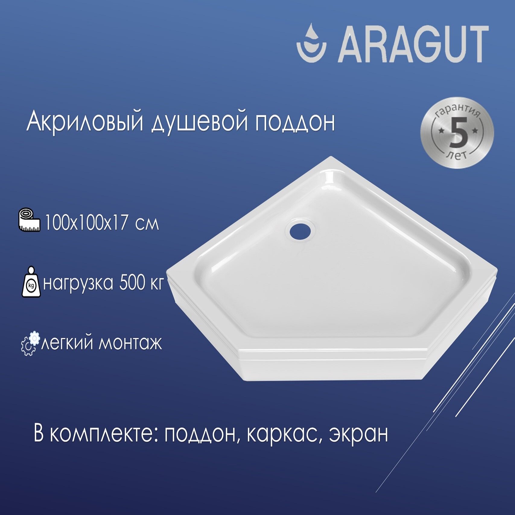 Душевой поддон ARAGUT 100х100 акриловый, низкий, пятиугольный информация: