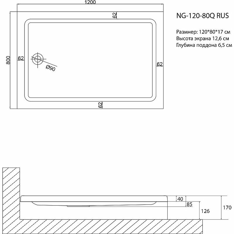 Акриловый поддон для душа Niagara Nova 120x80 NG-120-80Q RUS Белый информация: