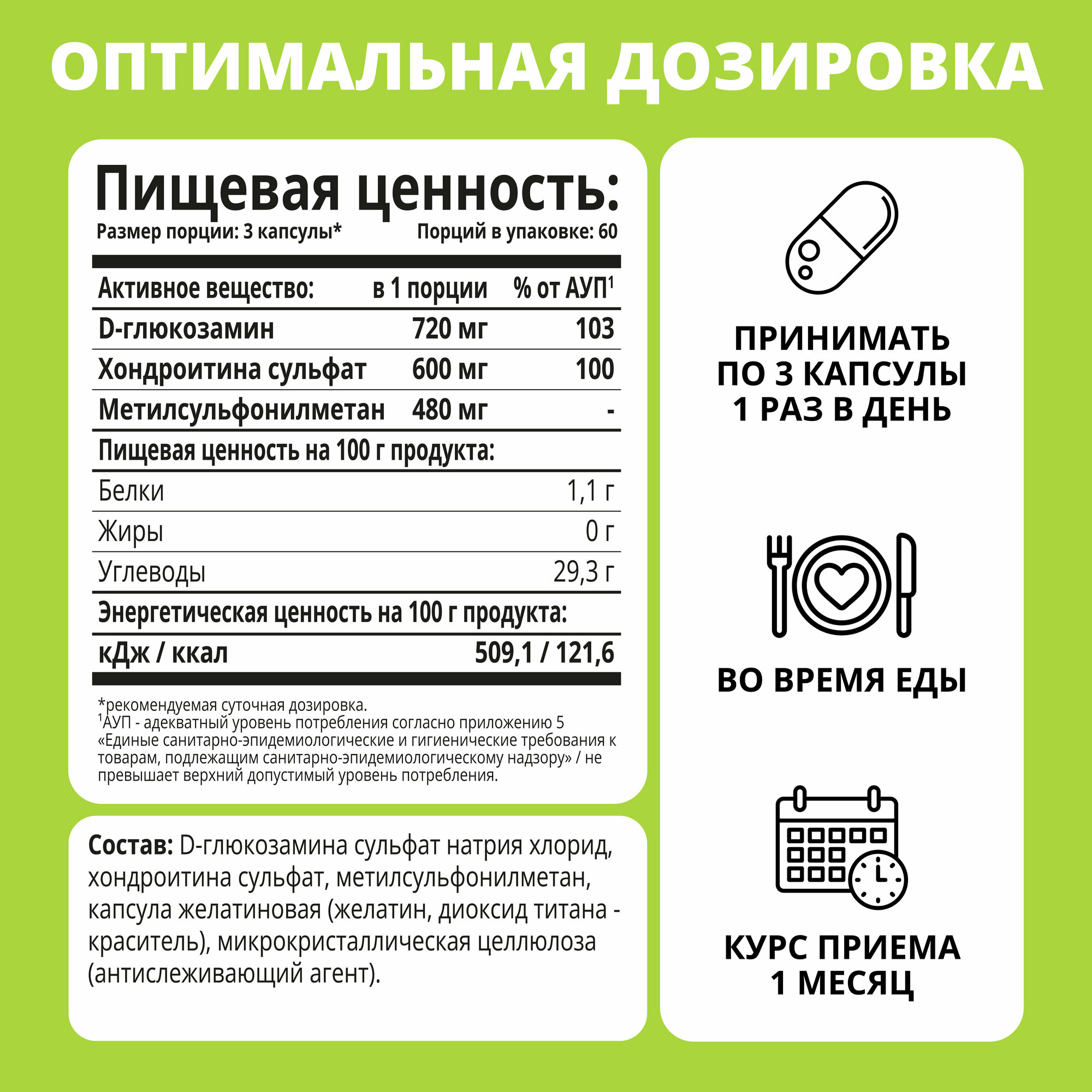 1WIN Глюкозамин и хондроитин + МСМ (MSM), для мужчин и женщин, суставов и связок, 180 капсул информация: