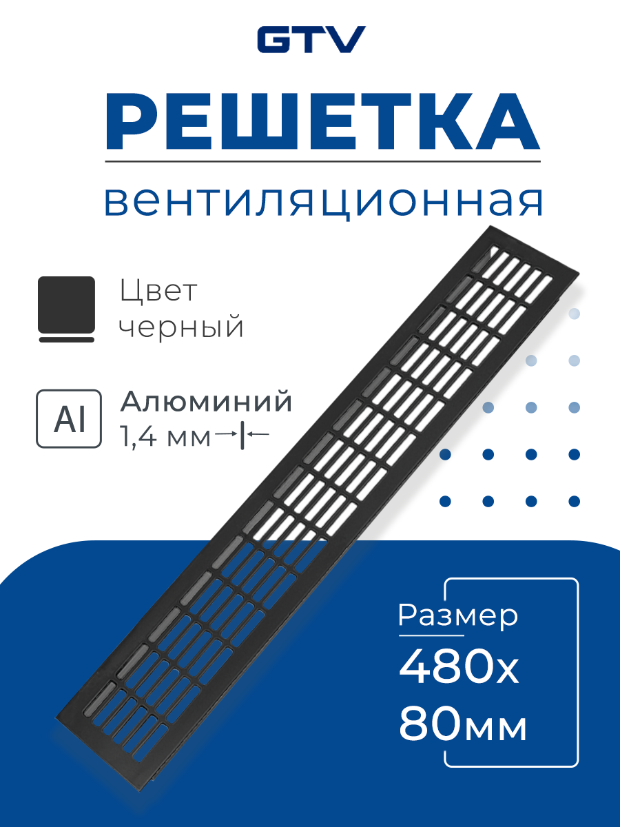 Вентиляционная решетка GTV, 480х80 мм, черная