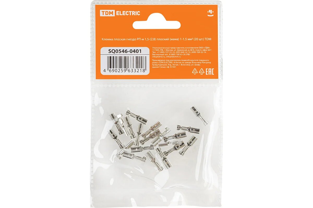 10 цен на Плоская клемма гнездо TDM РП-м 1.5-(2,8) плоский (мама) 1-1.5 кв. мм, 20 шт. SQ0546-0401