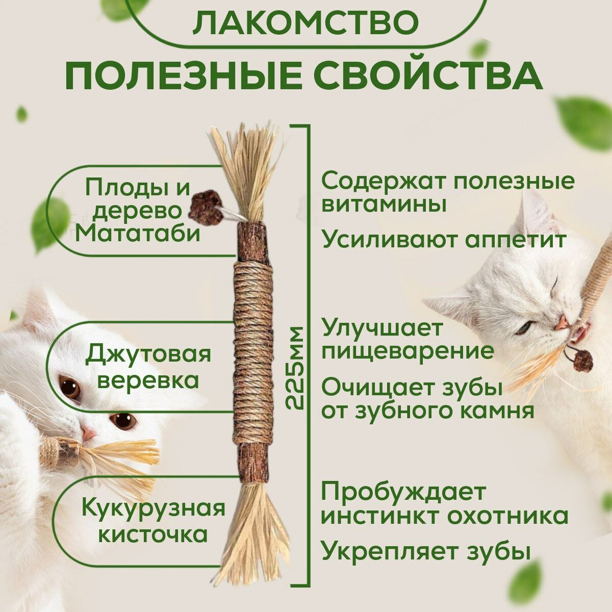 Полезные палочки для кошек. Лакомство игрушка дразнилка из Мататаби для чистки зубов с эффектом кошачьей мяты, 2 штуки информация: