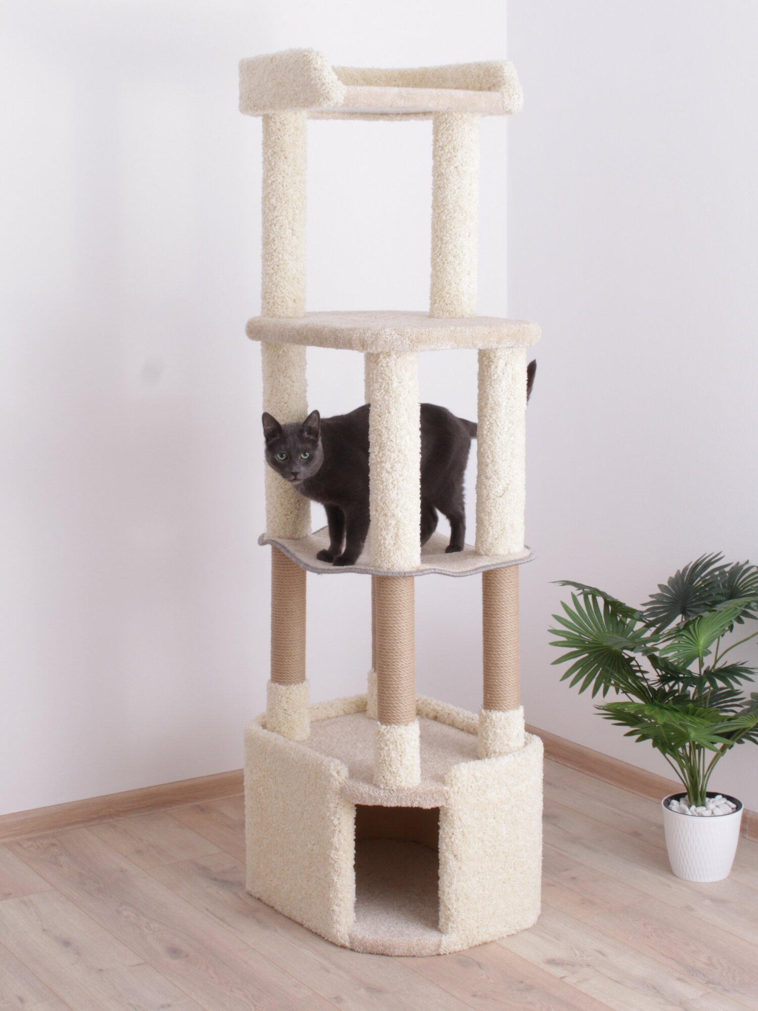 Отзывы на Когтеточка для кошек с домиком, гамаком и лежанками "Етк Зоо" Kiss 162, 40*52*162, бежевый ковролин, джут