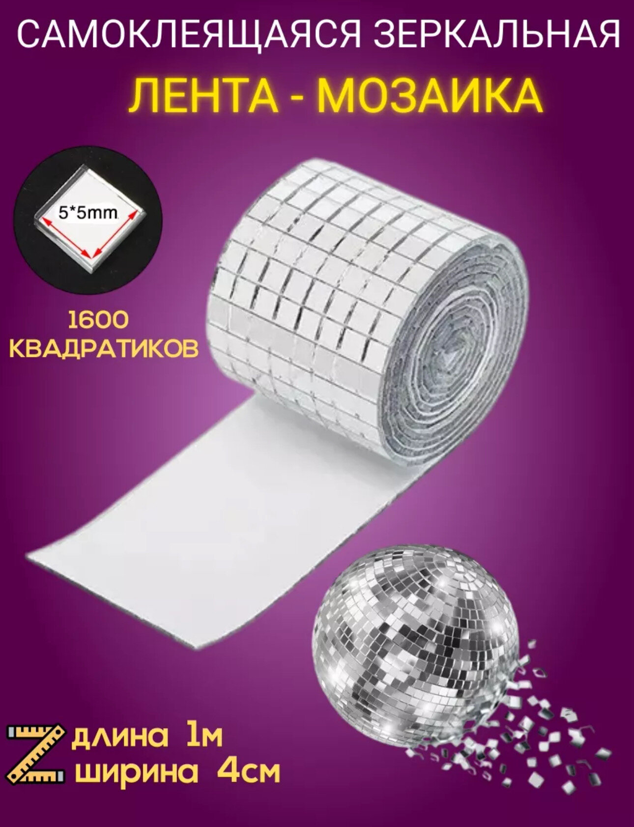 Лента-мозаика самоклеящаяся Kattami "Зеркало", серебристая, 40х100 см информация: