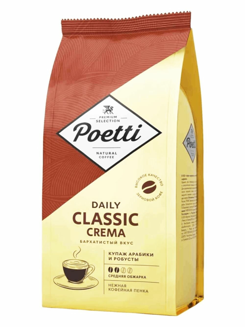 Кофе в зернах Poetti Classic Crema Арабика/Робуста 1 килограмм информация: