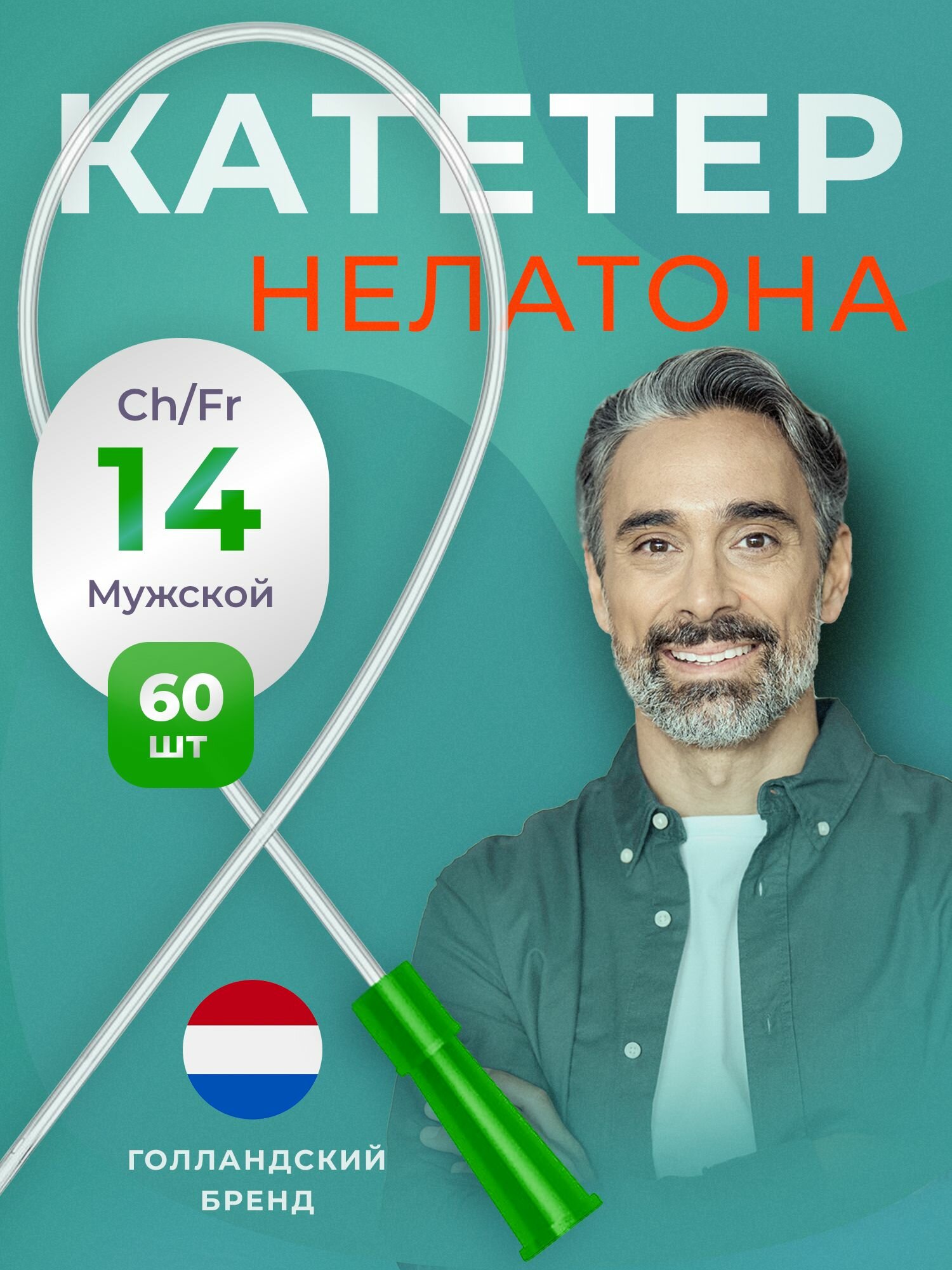 Катетер урологический Нелатона мужской, Сh/Fr 14, 60 шт, Apexmed
