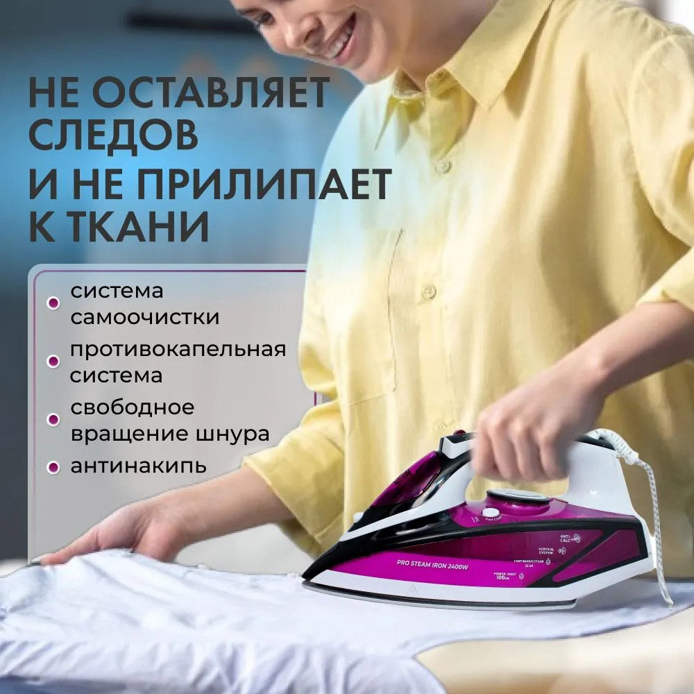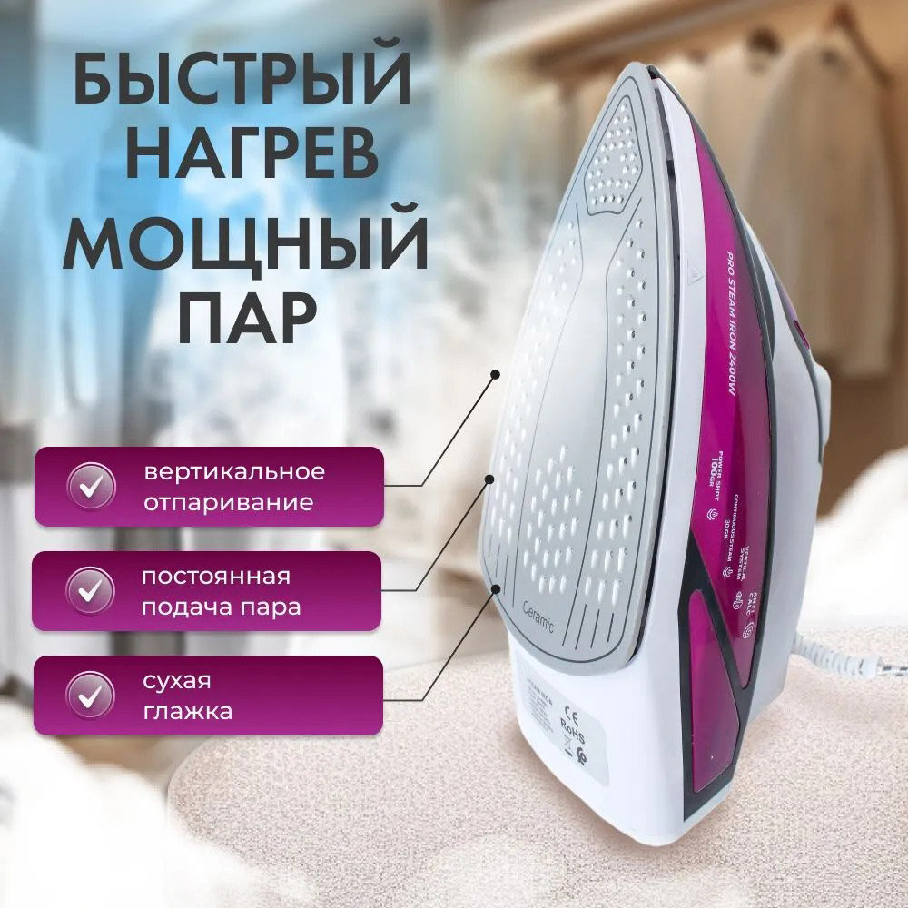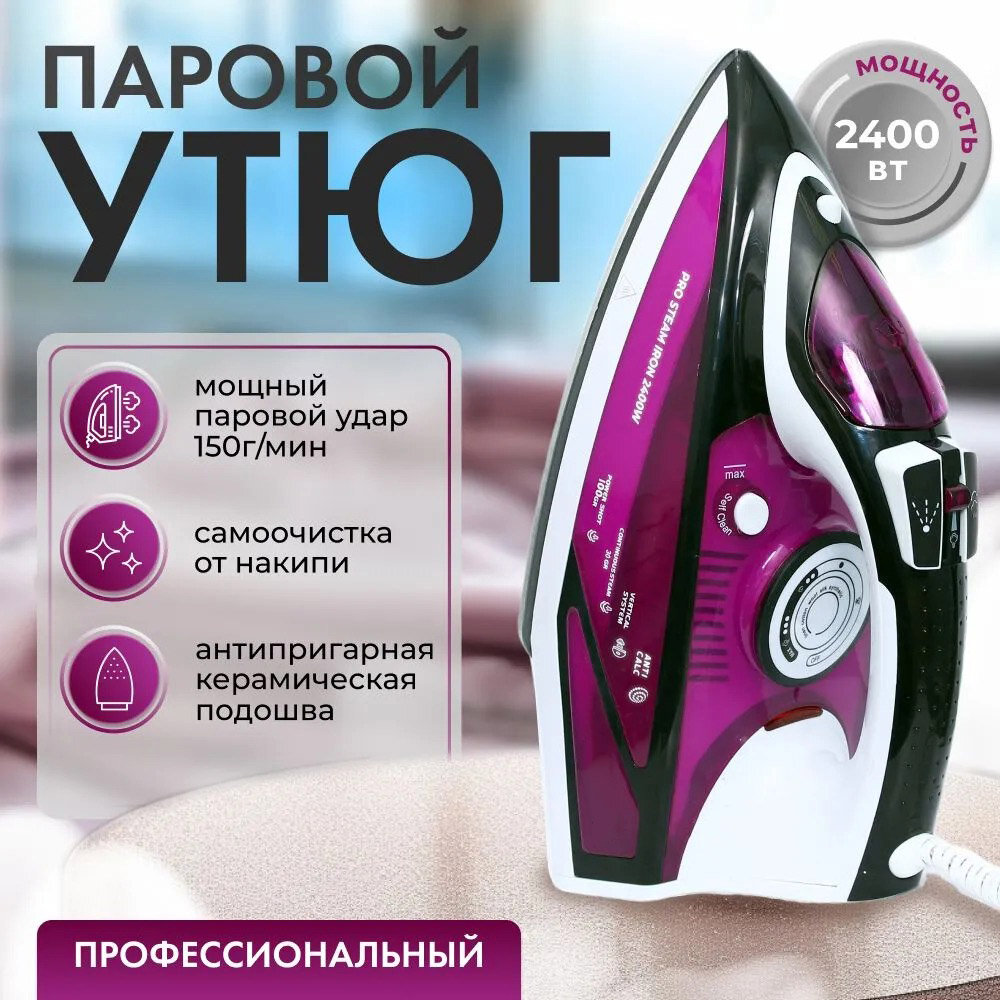 Домашний утюг паровой, с функцией вертикальной глажки, паровой удар, антипригарное покрытие, система самоочистки, 2600ВТ