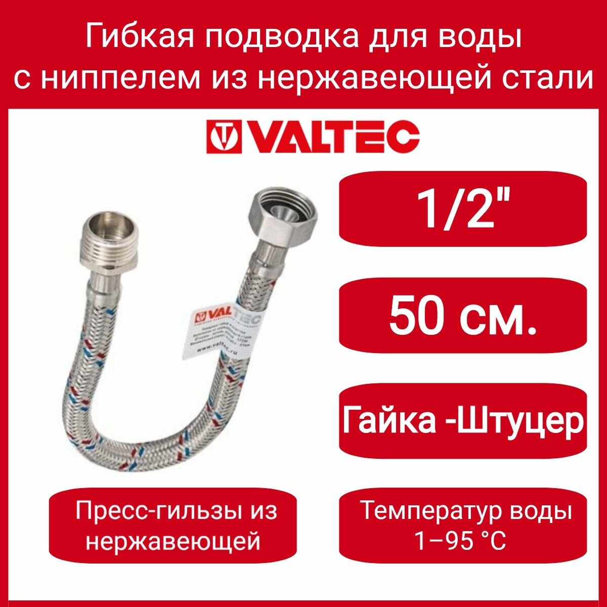 Valtec Гибкая подводка для воды с ниппелем из нержавеющей стали гайка-гайка 1/2" 50 см VTf.001. IS.0404050 428 ₽
