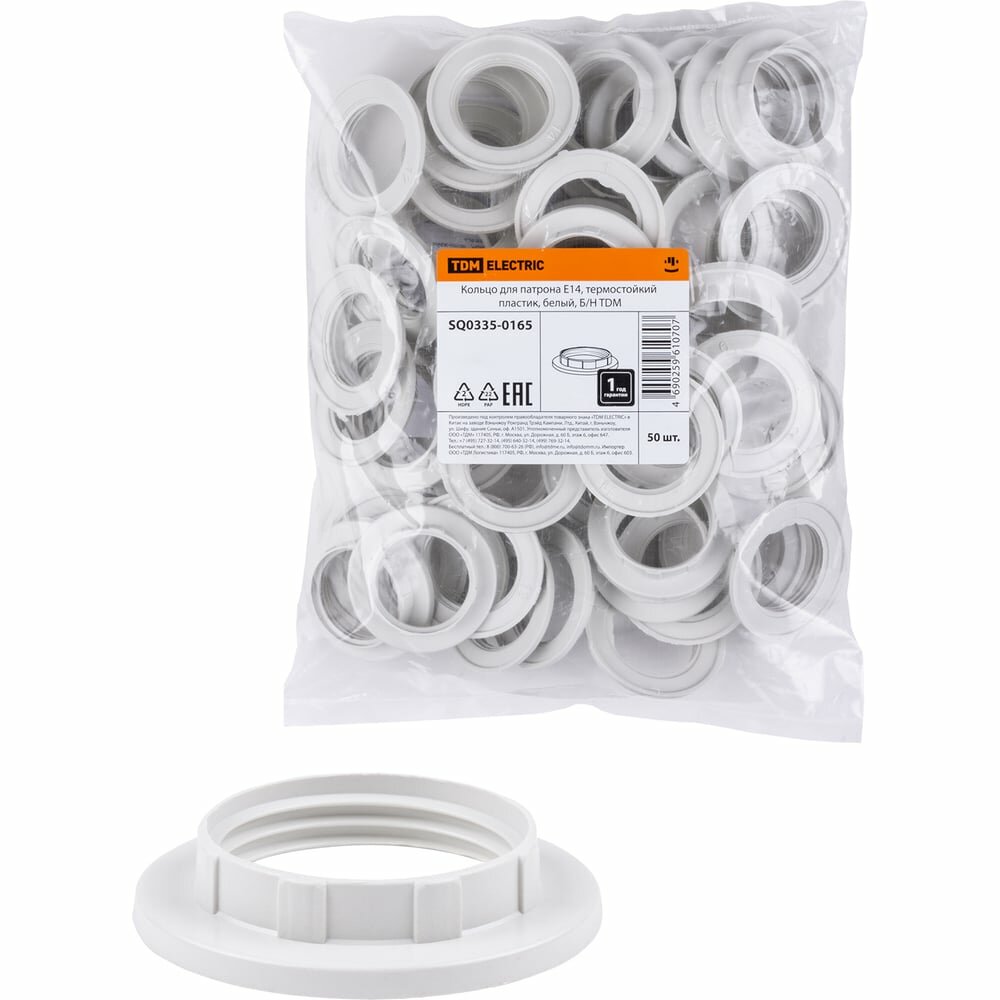 Патрон Е14 с кольцом, термостойкий пластик, белый, TDM (упак.50 шт)
